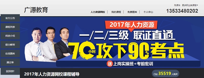 (在线) http://wx.020gyedu.com/norm/hr(请点击打开) 学习形式:网络在线学习 优 势:可以反复学习、重复听课、随时随地不限次数、方便价廉、海量习题库 报读指引:在我校网站注册、选课、缴费、开通账号、开始学习 缴费办法:选课后请加微信转账
